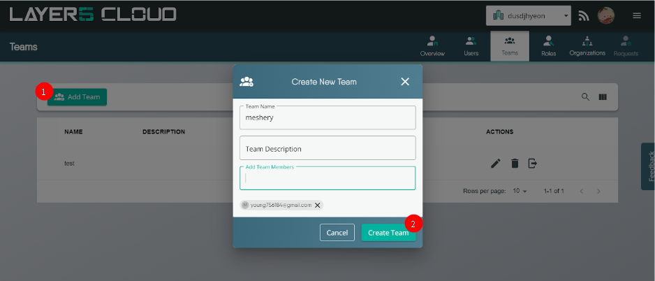 1. Teams are visible when you visit the Identity page in Layer5 Cloud.
